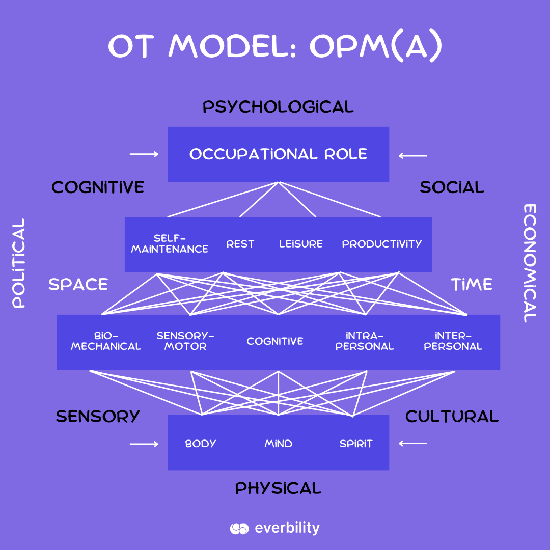 Occupational Therapy (OT) theoretical models are frameworks that guide the assessment and treatment process of OT practice. They provide a structure to understand and explain the complex and multifaceted nature of occupation, the central focus of the profession.
