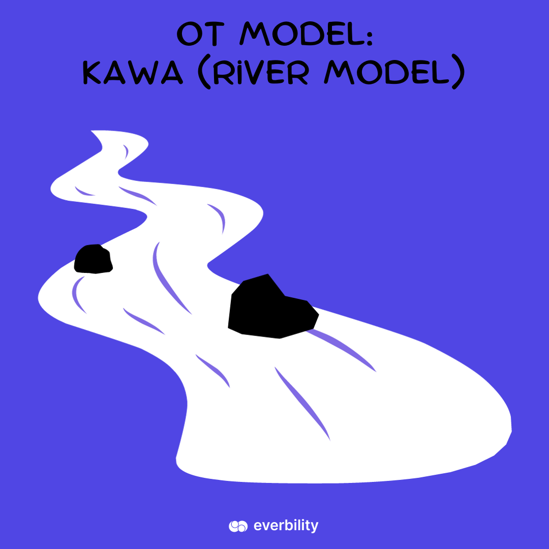 The name Kawa is derived from the Japanese word for 'river'. This model uses the metaphor of a river to depict a person’s life journey. Various aspects of a person’s life are represented by elements of the natural environment. This includes rocks, driftwood, and spaces in the river. It gives significance to the effect of the social and physical environment on the person's occupational performance.