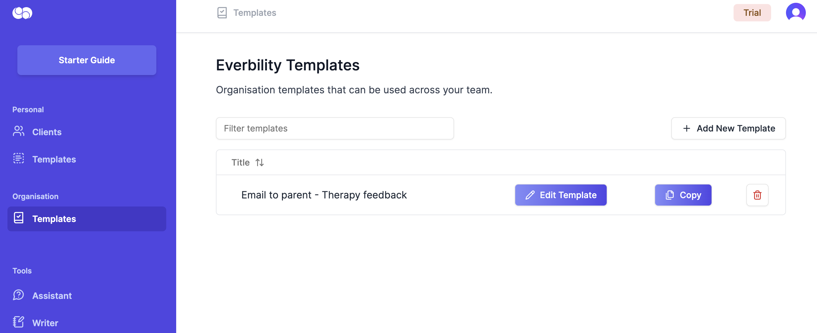 We have introduced organisation templates!! You can now create templates that are specific to your organisation. This will allow you to make the templates once and share them with your entire team right from within Everbility! Instant efficiency gains and standardisation across your team. π₯