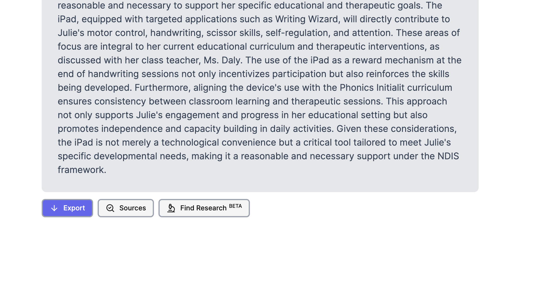 At Everbility, we are committed to building the most accurate AI in healthcare! We are taking a big step towards that by showing you the sources used to generate the content. You will see the client notes that Everbility referred to (when smart select is on) and what NDIS web pages it referred to (when using NDIS as the funding model). We have a lot more work planned to help you build more confidence in anything generated by Everbility (something more coming next week!!).